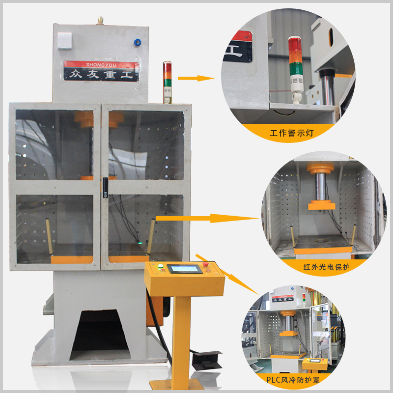 本系列压力机全部采用钢板焊接结构,机器强度强高,精度稳定并有长期的保持性,该机装有液压过载保护装置,利用三面空间,可拓宽工作范围,也可根据用户要求定做生产