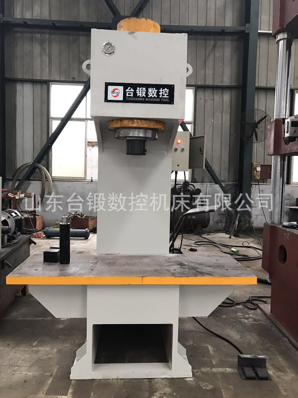 单臂油压机主要适用于金属制品拉伸、成型及压制等工艺,亦可加工非金属材料,粉末冶金制品的压制,轴类零件的校正,套类零件的压装以及金属制品的整形、切边等工艺。外型美观,操作方便。具有结构刚性好,导向性能好,速度快等特点。方便的手动调整机构可调整压头或上工作台在行程中任意位置压制,也可在设计 行程内任意调整快进和工进行程的长短。整体焊接的坚固开式结构可使机身保持足够刚性的同时拥有最方便的操作空间。机身整体铸造抗变形能力强,工作精度高,使用寿命长等优点,适合要求较高的产品