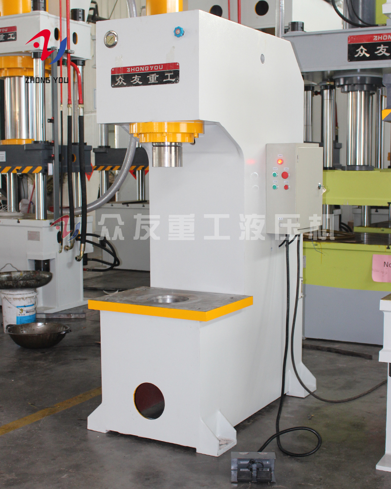 乐彩汇山东众友重工为苏州客户定制的单柱油压机是一种利用液压传动原理进行工作的工业设备,具有结构稳固、操作灵...